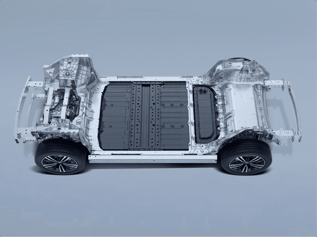 The battery is integrated as a fixed part of the platform. A 3-layer crash structure helps protect the battery, and the side pillar can withstand pressure up to 80 tons. And because of all this, we achieve a vertical space saving of 5%. For a better driving experience and a more spacious cabin.